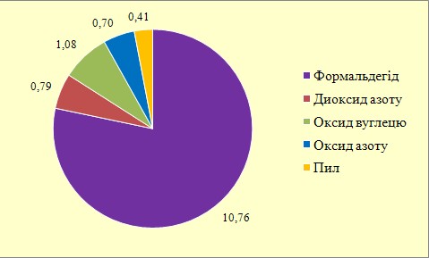 Перевищення максимальної разової гранично допустимої концентрації (ГДК м. р.) в атмосферному повітрі міста виявлено для формальдегіду (максимальне значення разової концентрації склало 4,31 ГДК м. р.); повторюваність перевищення ГДК м. р., у відсотках до кількості відібраних проб, склала 15,5%.