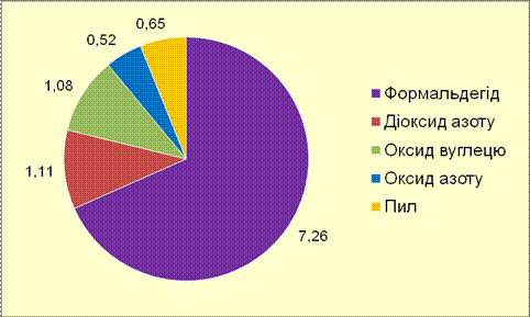 Перевищення максимальної разової гранично допустимої концентрації (ГДК м. р.) забруднюючих речовин в атмосферному повітрі міста виявлено при аналізі проб атмосферного повітря на вміст формальдегіду (2,98 ГДК м. р. ) та пилу (1,78 ГДК м. р.). Повторюваність перевищення ГДК м. р. формальдегіду склала 6,7%, пилу – 1,0%.