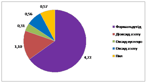 Перевищення максимальної разової гранично допустимої концентрації (ГДК м. р.) забруднюючих речовин в атмосферному повітрі міста виявлено при аналізі проб на вміст формальдегіду (1,17 ГДК м. р., повторюваність перевищення ГДК м. р. склала 0,5%), діоксиду азоту (1,14 ГДК м. р., повторюваність перевищення - 0,5%) та пилу (1,12 ГДК м. р., повторюваність перевищення ГДК м. р. - 1%).