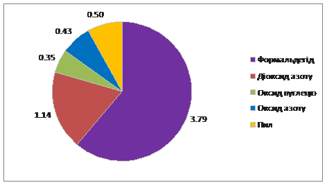 Перевищення максимальної разової гранично допустимої концентрації (ГДК м. р.) забруднюючих речовин в атмосферному повітрі міста виявлено при аналізі проб на вміст формальдегіду (1,33 ГДК м. р., повторюваність перевищення ГДК м. р. склала 0,7%).